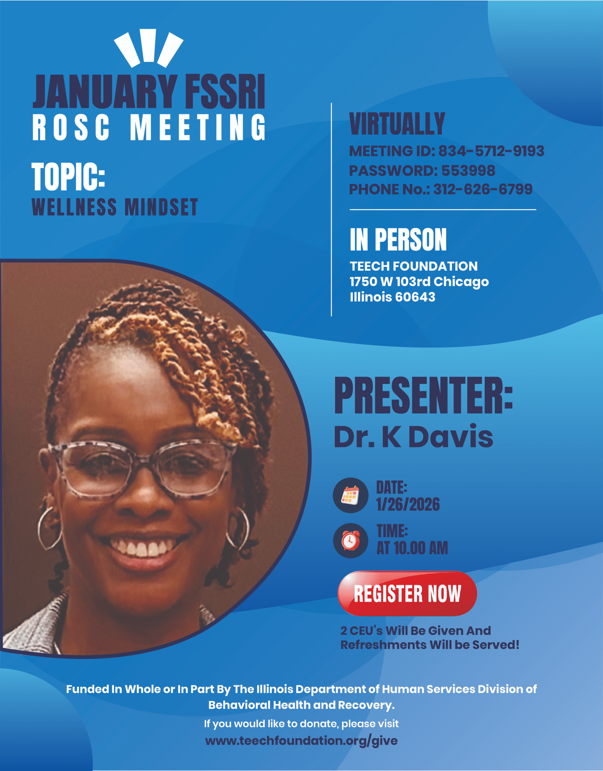 Funded In Whole or In Part by the Illinois Department of human Services Division of Behavioral Health and Recovery